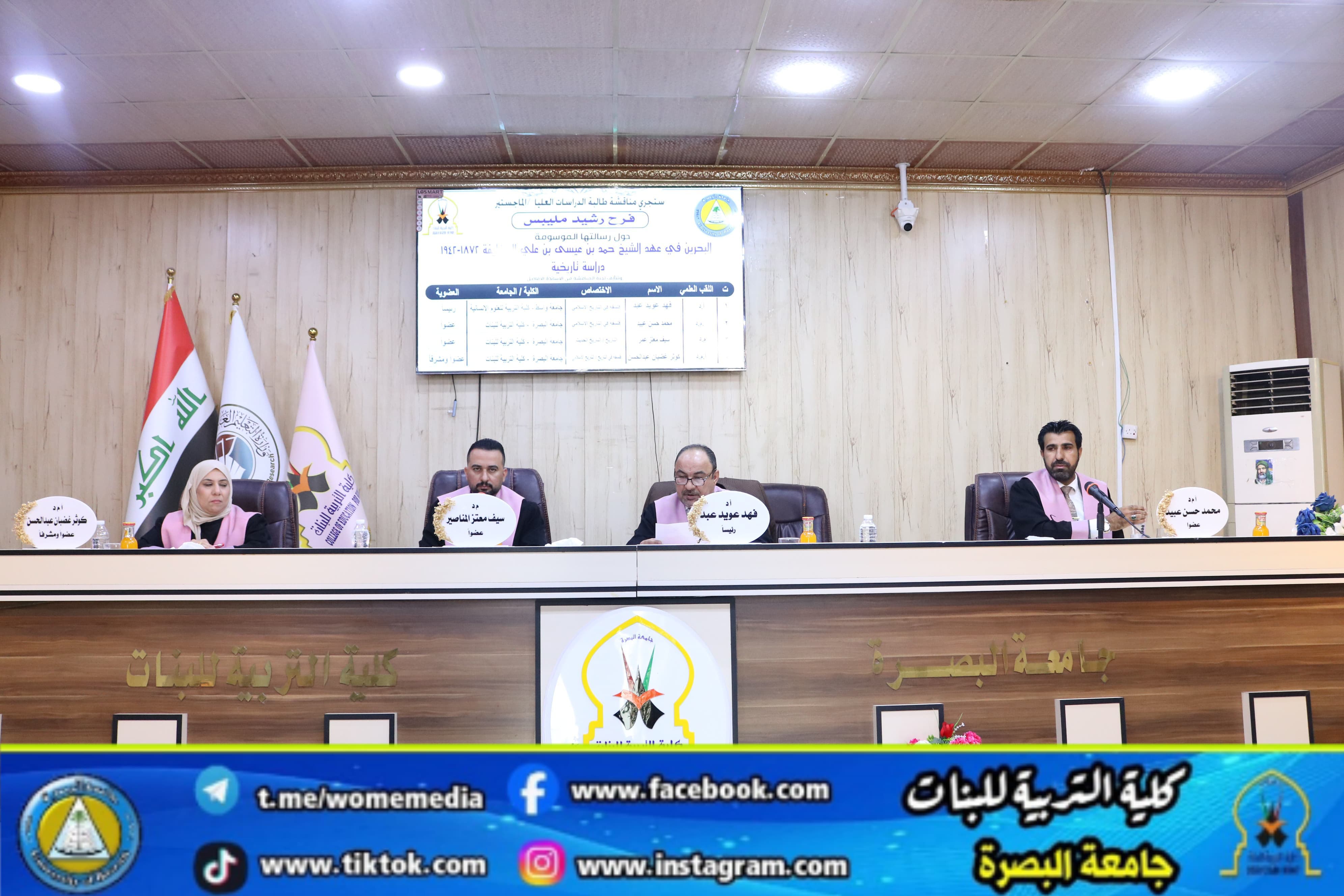 The study, presented by researcher Farah Rashid Melebes Al-Saadoun in the Department of History, aimed to study Bahrain during the reign of Sheikh Hamad bin Isa bin Ali Al Khalifa (1872-1942).