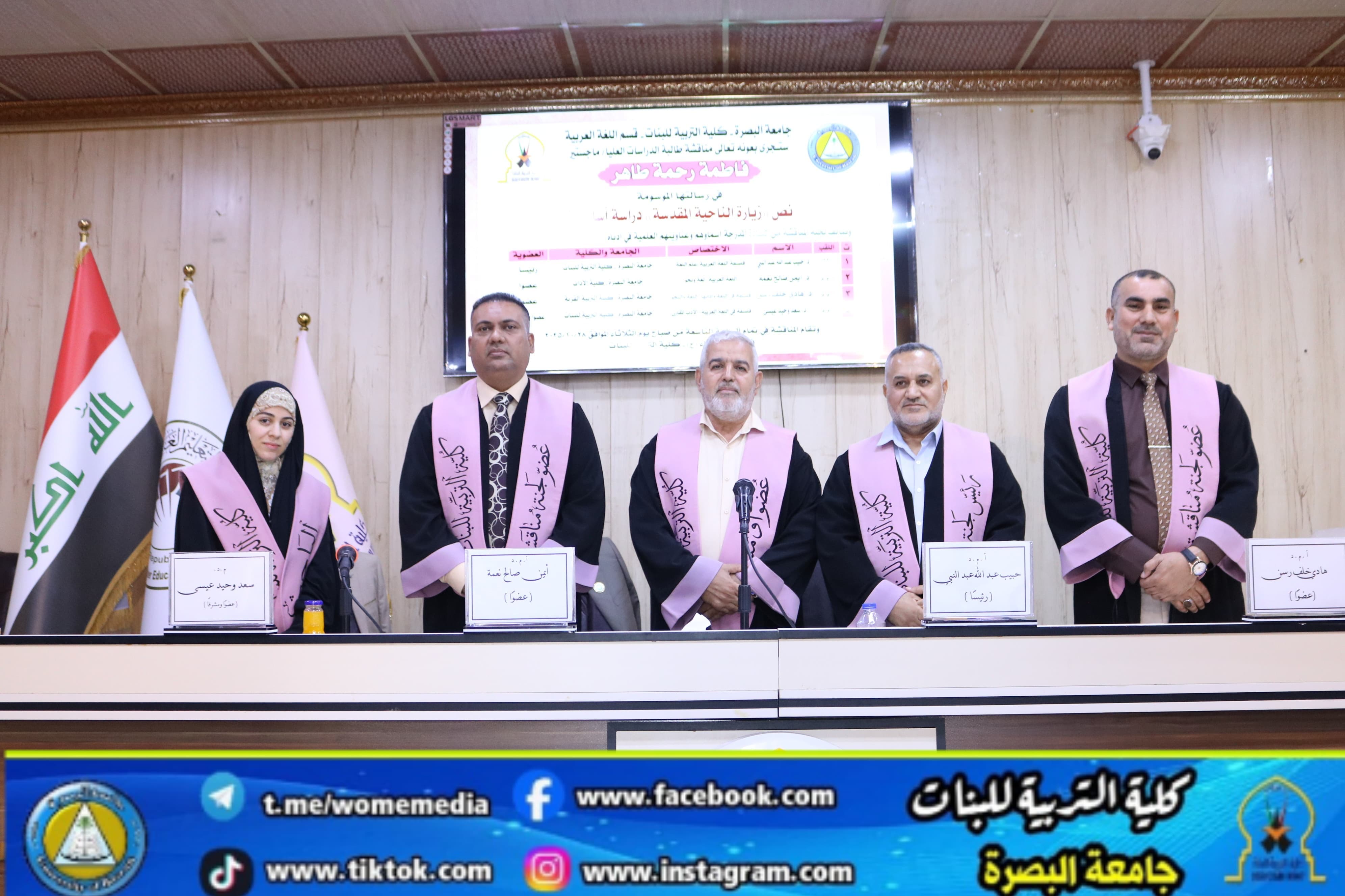 The study, presented by student Fatima Rahma Taher in the Department of Arabic Language, aimed to provide a scientific stylistic analysis of the Visitation to the Holy Shrine. This was achieved by examining its linguistic and intrinsic structure, exploring its formal and implicit aspects, and seeking to understand its expressive intentions and uncover its historical and human dimensions.