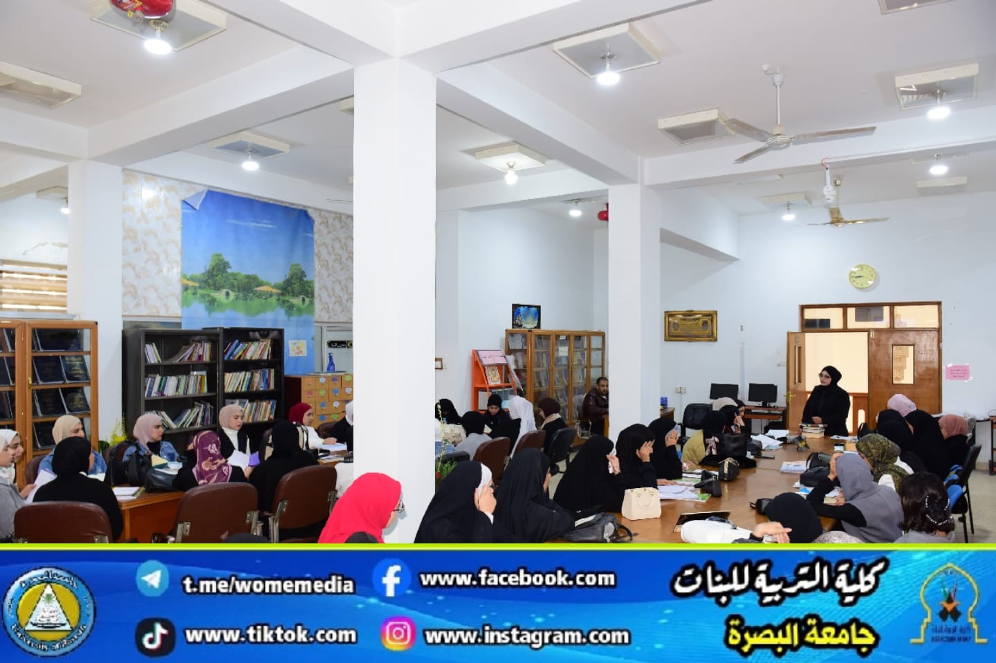 Assistant Lecturer Ibtihal Fouad, from the College of Education for Women, delivered a specialized scientific lecture on Arabic dictionaries, beginning with Al-Ain Dictionary by Al-Khalil ibn Ahmad Al-Farahidi, then moving on to Lisan Al-Arab by Ibn Manzur, and Muqayis Al-Lughah by Ibn Faris. This lecture aimed to enhance students' lexicographical awareness and connect them with primary linguistic sources.