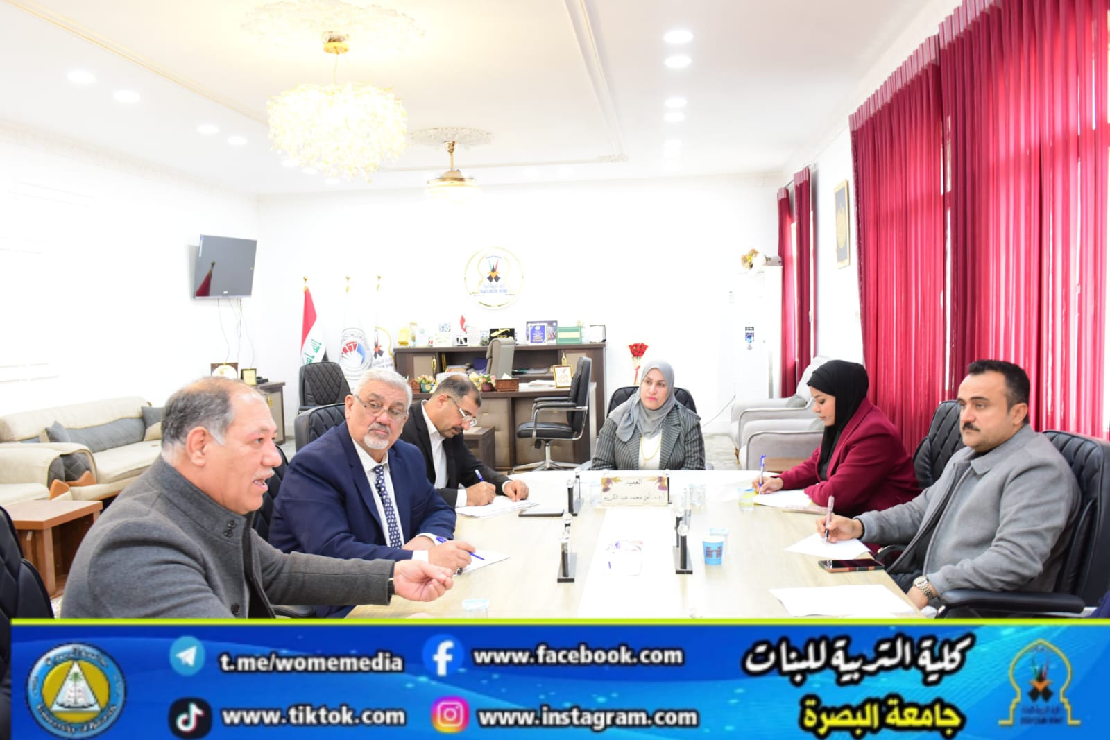 As part of the college's commitment to enhancing academic and administrative work, the Dean of the Social College held an extensive meeting this morning with the heads of departments, during which the specialization of performance development, student affairs follow-up, and improving the scientific and service reality of the college are discussed, in line with educational and institutional skills, and reflecting the honorable image of the college.