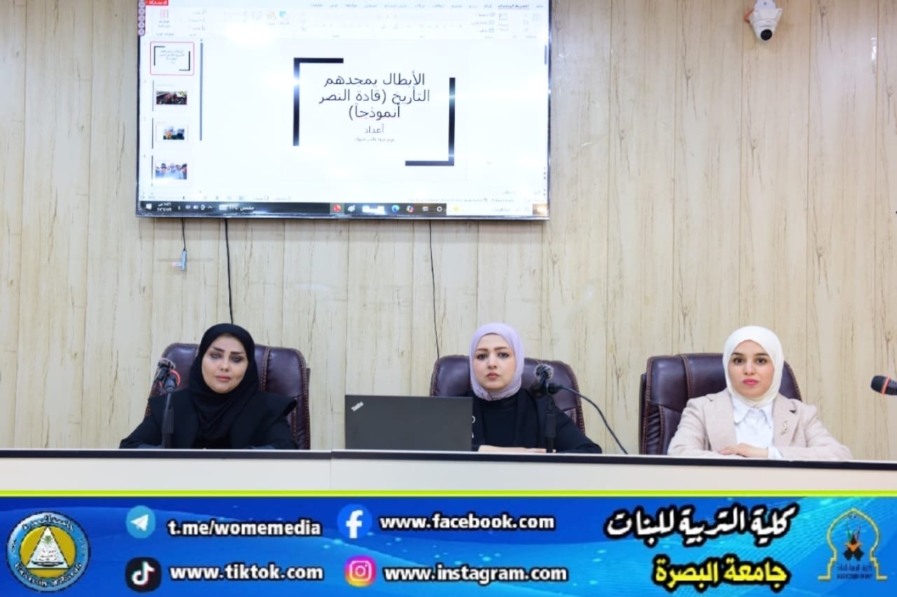 The College of Education for Women at the University of Basra organized a cultural seminar entitled "Heroes Glorified by History: Leaders of Victory as a Model."